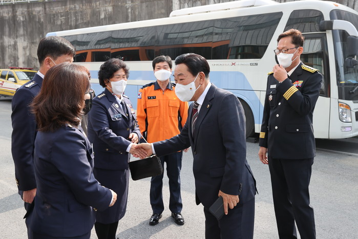 이날 의원들은 현안업무 등을 보고 받고 소방공무원과 의용소방대원들의 헌신과 노고를 위로하며 대원들과 소통하는 시간을 가졌다.
