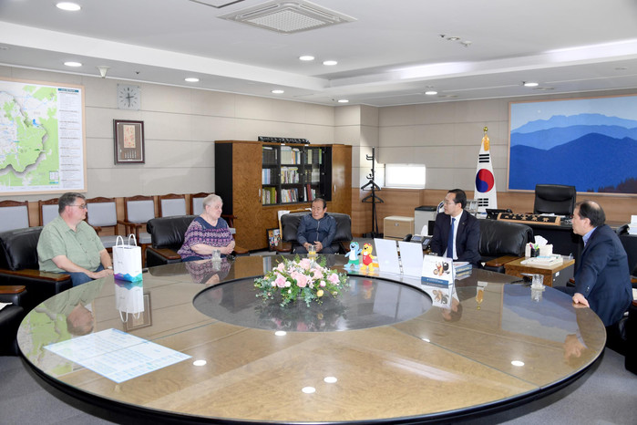 [광주=세계타임즈 손권일 기자] 김동찬 광주시의회 의장은 7일 5.18의 진실을 해외에 알리기 위해 노력했던 고(故) 아놀드 피터슨(한국명: 배태선) 목사의 부인 바바라 피터슨 여사(74세)와 장남 더그 피터슨(53세)등 가족 일행을 접견하고 감사의 마음을 전했다.