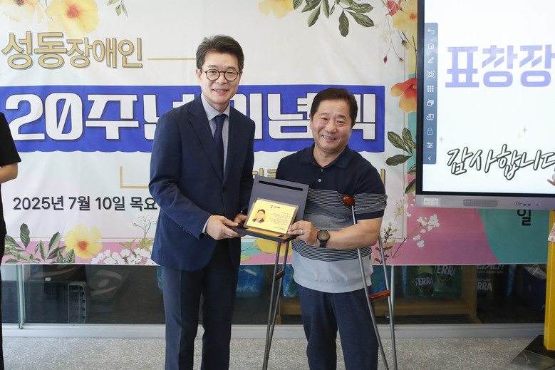 [성동구 세계타임즈=이장성 기자] 서울 성동구(구청장 정원오) 성동장애인자립생활센터(이하 성동센터)가 20주년을 맞아 '함께 걸어온 20년, 함께 만들어갈 내일'을 주제로 7월 10일 20주년 기념식을 개최했다.