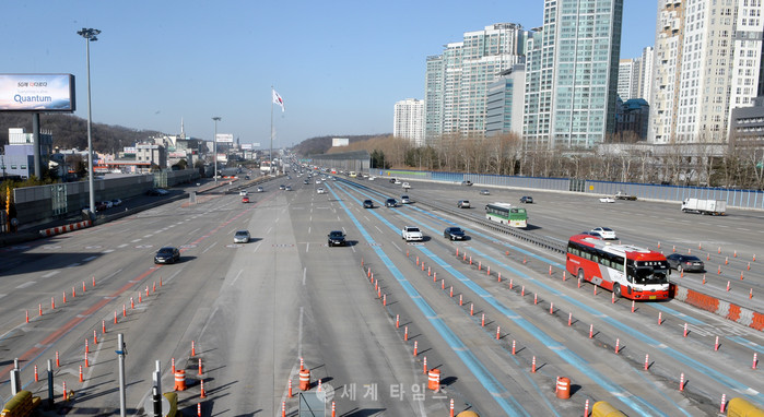 설 연휴 첫째날인 27일 오후 경기도 성남시 경부고속도로 서울요금소에서 바라본 상·하행선 양방향이 원활한 소통을 보이고 있다. 2017.01.27.