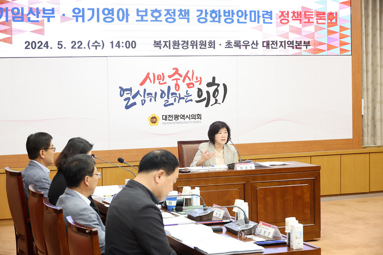 이번 정책토론회는 대전시의회가 주최하고 복지환경위원회와 초록우산 대전지역본부에서 공동주관 하는 것으로 ‘아기 울음소리도 지켜져야 할 권리입니다’라는 슬로건 아래 대전지역의 임신과 출산, 양육의 어려움을 겪는 부모가 영아에게 안전하고 따뜻한 보살핌을 제공할 수 있도록 공적 지원을 강화하고 보호 체계를 마련하고자 전문가와 시민의 의견을 수렴하는 시간으로 이뤄졌다.