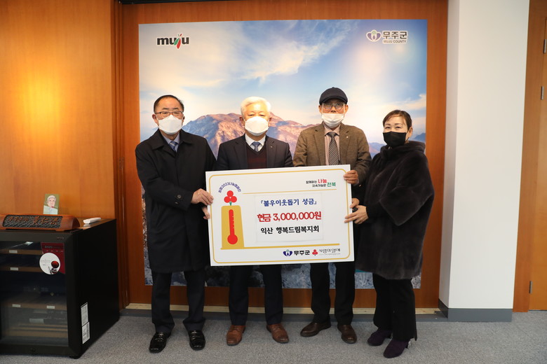 [무주=세계타임즈 = 이영임 기자] 연말연시를 맞아 무주군에 장학금과 성금이 답지하고 있어 귀감이 되고 있다. 13일 사단법인 행복드림복지회는 무주군에 취약계층에 사용해 달라면서 성금 300만 원을 기탁했다.