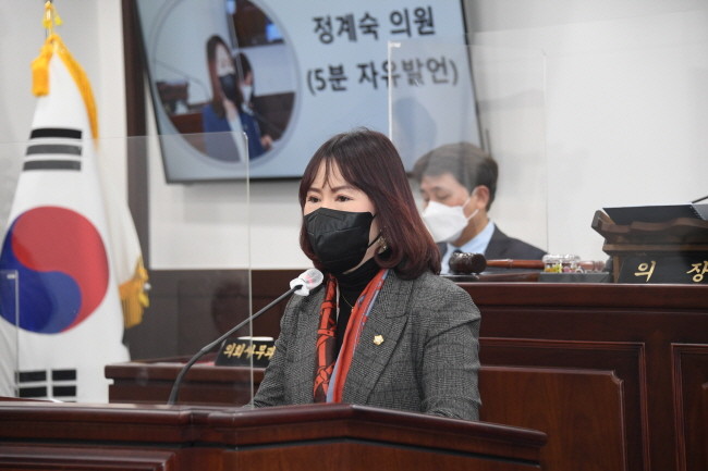 [세계타임즈 백진욱 기자]제8대 동두천시의회가 지난 21일 제308회 정례회를 마무리하며 2021년도 공식일정을 모두 마감했다. 코로나19 시대를 이겨내기 위한 다양한 지역 정가의 노력들 속에서 단연 돋보이는 의정활동을 펼치고 있는 정계숙 의원(국민의힘, 가선거구, 재선)을 만나보았다.