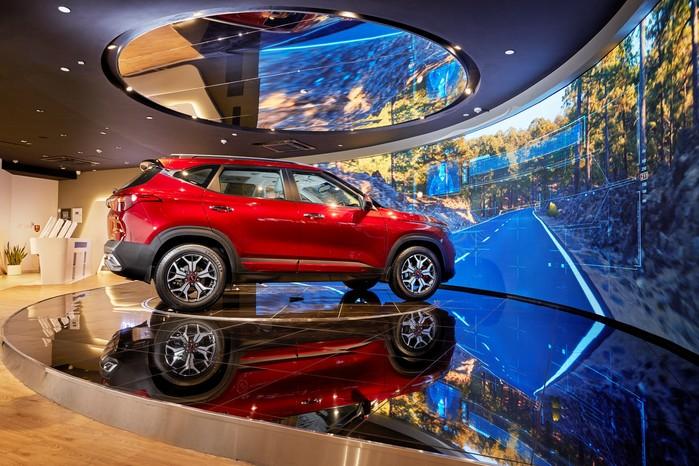 ‘BEAT360 델리’는 ▲나만의 차량 옵션 구상 및 3D 가상 주행 체험이 가능한 3D 컨피규레이터존 ▲혼합현실(MR, Mixed Reality) 신기술로 차량 상세 USP를 소개하는 MR 체험존 ▲초고해상도 대형 LED 스크린 (11mX2.4m)과 턴테이블에서 기아차 미래 비전 영상을 상영하는 서라운드 미디어존 등으로 구성돼 기아차를 처음 접하는 인도 고객들을 위해 기본적인 브랜드 소개부터 첨단 디지털 기기를 통해 직접 셀토스의 구석 구석을 색다르게 체험할 수 있는 기회를 제공한다.