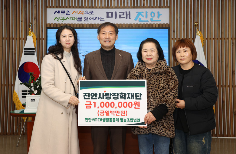 [진안 = 세계타임즈 김서주 기자] 진안 YMCA 생활공동체 영농조합법인은 19일 진안 군수실을 방문해 진안사랑장학재단(이사장 전춘성)에 장학금 100만원을 기탁했다.