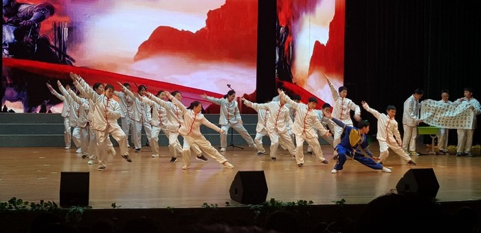 저녁식사 후 애화외국어학교 대강당에서는 한중 문화교류가 펼쳐졌다. 중국 측에서는 춤과 노래로 진행되는 공연에 이어 농구공을 활용한 단체 공연, 무술로 이뤄진 춤 등을 선보였고, 한국 문화로는 무악중학교와 무악여고의 ‘멀시’팀과 ‘크러시’팀의 각각의 댄스공연과 북 공연, 사물놀이 등이 펼쳐져 우뢰와 같은 박수갈채를 받았다. 이날 행사에는 옌타이에 소재한 한국학교 공연팀도 참석해 눈길을 끌었다. 양국 청소년들이 마음의 문을 활짝 여는 순간이었다. 특히 애화외국어학교 고등학교 3년생으로 베이징대에 입학을 앞둔 한국인 학생 정시훈양과 이다윤양이 통역하면서 중국인 학생과 함께 사회를 맡아 이채를 띠었다.