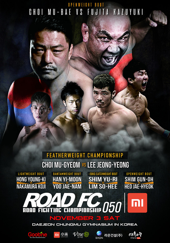 [세계타임즈 김인수기자] XIAOMI ROAD FC 050은 대회사는 물론, 선수들에게도 ‘도전’으로 볼 수 있는 대회다. 대회사 입장에서 보면 ROAD FC 역사상, 그리고 대한민국 MMA 역사상 최초로 대전에서 하는 메이저 대회다. 50번째 넘버시리즈라는 상징적인 숫자도 의미를 더한다. 선수들 입장에서 볼 때는 타이틀전에 나서는 최무겸(29, 최무겸짐), 이정영(22, 쎈짐), 최무배(노바MMA/최무배짐) 등 여러 선수들이 기록에 도전한다. 과연 그 기록들은 어떤 것들이 있을까.