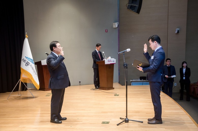 이날 행사는 새내기 공무원의 가족과 선배, 동료 공무원 등 100여 명이 참석한 가운데 세종의 역사 영상 시청, 임용장 수여, 대표자 선서, 시장과 함께하는 대화의 시간 등으로 진행됐다.
