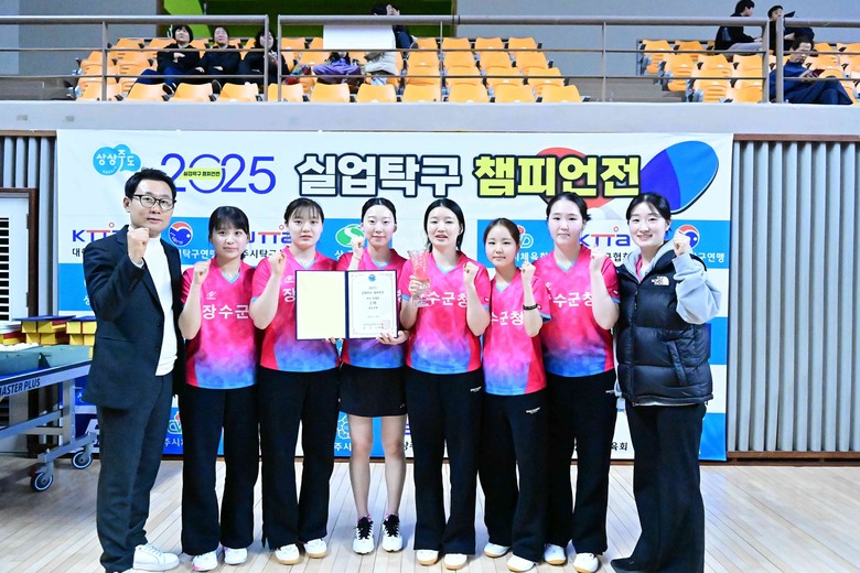 [장수 = 세계타임즈 김서주 기자] 장수군이 이끄는 장수군청 여자탁구 단이 지난 10일부터 16일까지 7일간 경북 상주체육관에서 열린 ‘2025 실업탁구 챔피언 전’ 단체전과 개인전(단식)에서 각각 3위를 차지하며 뛰어난 기량을 입증했다.