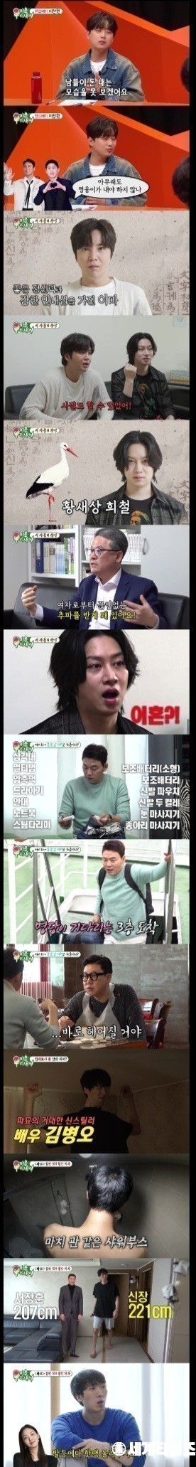 이상민은 이어 김준호와 함께 영화 ‘파묘’에서 일본 귀신을 연기한 배우 김병오의 집을 찾았다. 221cm의 장신을 보유한 김병오는 샤워부스도 고개를 숙여 들어가야했고, 머리가 천장에 닿기도 해 모두를 놀라게 했다. 김병오는 ‘파묘’ 출연에 얽힌 비하인드도 전했다. 김병오는 “귀신 캐릭터를 네 명이서 했다. 제가 몸이고, 김민준 배우가 얼굴 역을 했다”고 전했고, 캐스팅에 대해서는 “일하는 농구교실에 제작사 피디님이 연락이 왔다”고 설명했다. 이어 “이렇게 잘 될 줄은 정말 생각도 못해 얼떨떨하다”고 소감을 전했다. 배우들을 직접 봤냐는 질문에 김병오는 “촬영할 때 최민식 선배님이 장난을 많이 쳐주셨다. 너무 추워서 떨고 있을 때는 김고은 선배님이 갑자기 발등에다 핫팩을 올려주기도 했다”고 미담을 전해 눈길을 끌었다.