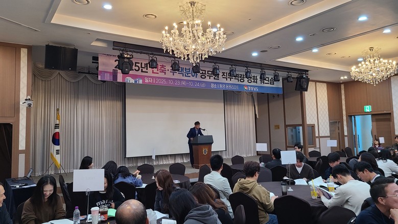 - 도민 중심의 건축행정 구현을 위해 한 걸음 더 나아가 [세계타임즈=경남 최성룡 기자] 경상남도는 지난 23일부터 24일까지 1박 2일간 통영 동원리조트에서 '2025년 건축·주택 분야 공무원 직무 역량강화 워크숍'을 개최했다.