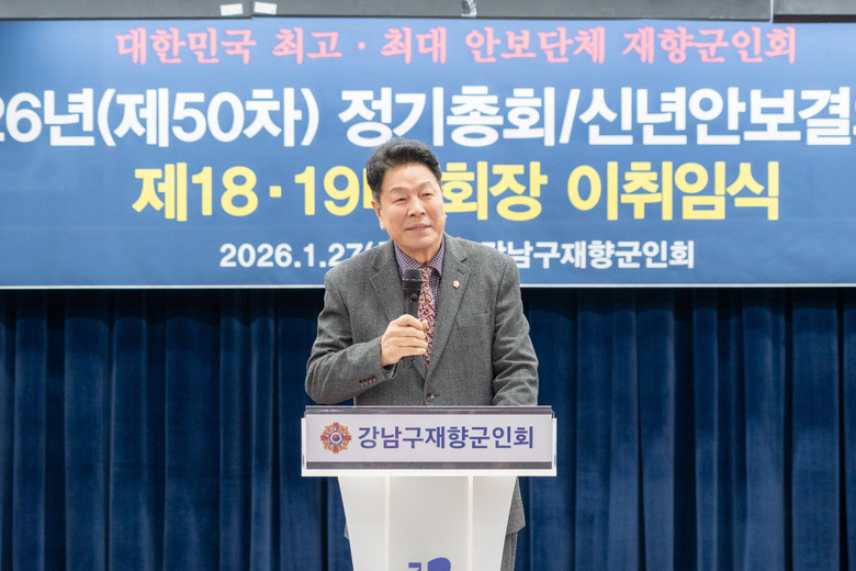 [강남구 세계타임즈=이장성 기자] 강남구의회(의장 이호귀)는 27일 논현2동 주민센터 7층 대강당에서 열린 ‘강남구 재향군인회 이·취임식 및 신년 안보결의대회’에 참석했다.