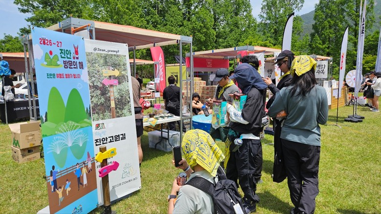 이외에도 행사장 주변에 설치된 홍보부스들도 눈길을 끌었다. 다양한 아웃도어 브랜드 체험 부스와 함께 진안군 대표 트레일인 ‘진안고원길’과 ‘2026~2027 진안방문의 해’홍보부스가 인기를 끌었으며, 주민과 연계해 지역 농산물을 판매하는 부스도 큰 호응을 얻었다.