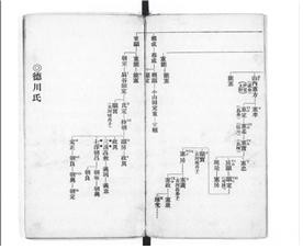 <도쿠카와 이에야스(德川家康)의 가문의 계보이며 이에야스(家康)의 바로 밑에 계승자인 히데다테(秀忠)가 보이고 맨 왼쪽에 호시나 마사유키(保科正之)가 적혀 있는데 그 옆에 會津正央 養子 즉 아이즈번의 양자라고 명확히 기록되어 있다.>