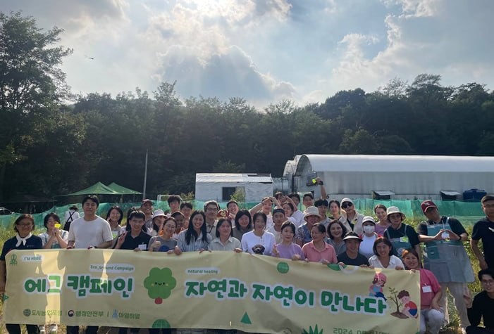 | ▲8월 31일, 에그 캠페인 출범식에서 참가자들이 '자연과 자연이 만나다'라는 주제로 함께 기념사진을 찍고 있다. |