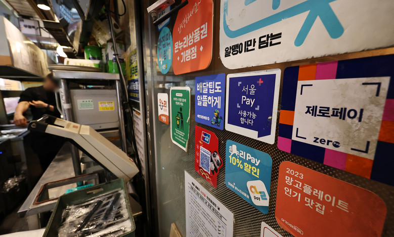 이날 서울 마포구 망원시장에 서울페이와 온누리상품권 등 안내문이 붙어있다. 2026.3.31