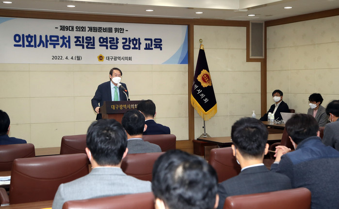 [대구=세계타임즈 한성국 기자] 대구광역시의회(의장 장상수)가 4월 4일(월) 오후 1시 30분 의회 3층 회의실에서 의회사무처 직원을 대상으로 ‘역량강화 교육’을 실시하였다.