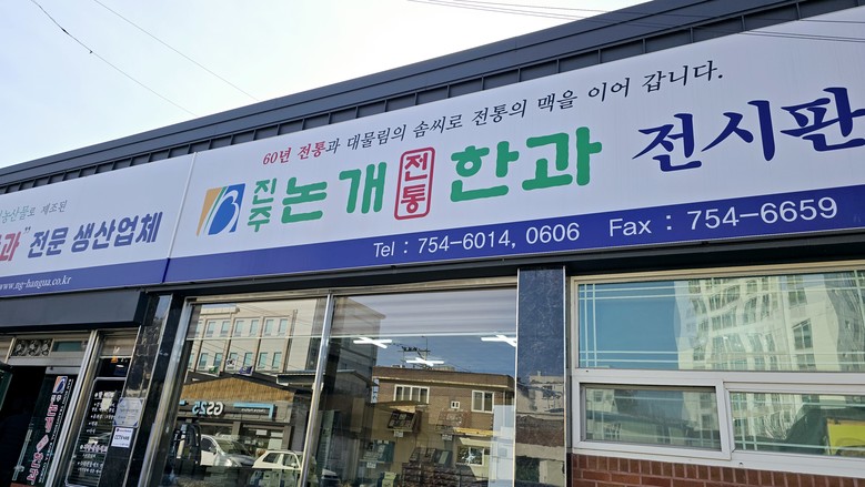 2025년 1월 9일, 필자는 진주 일반성에 위치한 진주논개전통한과를 방문했다. 진주논개전통한과는 서울의 정부기관이나 대기업에서 선물용으로 구입하기 때문에 매출에 크게 신경 쓰지 않는다고 한다. 그럼에도 불구하고 지역 주민들이 좋아해 명절 때면 손님들이 기다린다고 전해진다. 이혜영 대표는 올해도 정부기관과 대기업에서 선물용으로 구입해줘 고맙다고 전하며, 매장도 넓히고 선물 꾸러미 준비에 분주한 모습을 보였다.