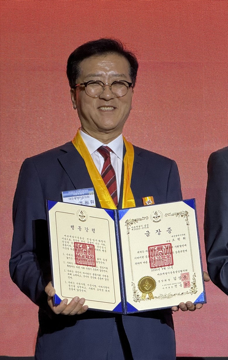 금장은 바르게살기운동 중앙협의회에서 개인 자격으로 받을 수 있는 가장 높은 등급의 훈·포장으로 그간, 조 의장이 바르게살기운동 지역 활동의 제도적 근거 마련과 사회적 약자·소외계층을 위해 헌신하는 등 바르게살기운동 실천에 기여한 공로를 인정받아 수상의 영예를 안았다.