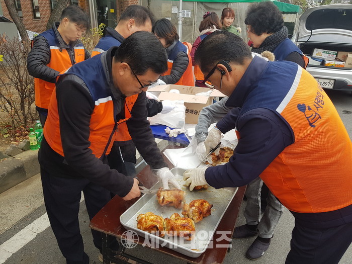 이날 봉사에는 신상일 통닭봉사 회장, 유희자 나눔봉사단장을 비롯해서 회원 30명이 추운날씨에도 통닭 봉사를 하였다.