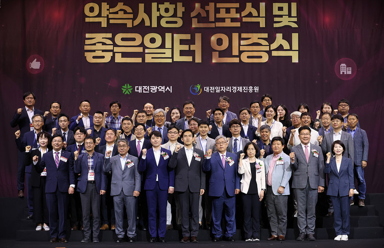 [대전 세계타임즈=이채봉 기자] 대전시의회 김진오 부의장은 대전형 노사상생모델 좋은 일터 조성사업의 일환으로 28일 호텔ICC에서 열린‘2024년 약속사항 선포식 및 2023년 좋은 일터 인증식’에 참석해 정향숙 대전고용센터 소장 및 한국노총 대전본부 황병근 의장을 비롯한 내빈들과 인사를 나눴다.