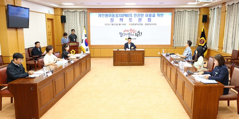 [대전 세계타임즈=이채봉 기자] 대전시의회 산업건설위원회 방진영 의원(더불어민주당, 유성2)은 21일, 대전시의회 3층 소통실에서 『개인형이동장치(PM)의 안전한 이용을 위한 정책토론회』를 개최했다.