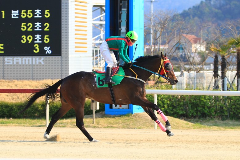 ■ 캄스트롱 (부산, 3세, 미국, 레이팅83, 이혜란 마주, 강형곤 조교사, 승률 33.3.%, 복승률 33.3%)
