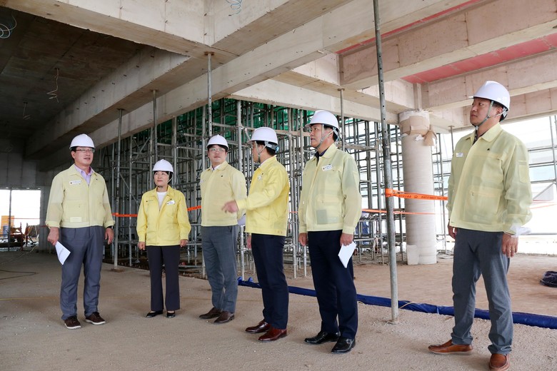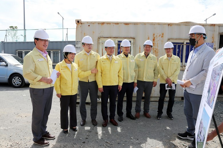▲ DaaS(Drone as a Service)기반 글로벌 오션시티 실증 사업을 바탕으로 해외 시장 개척과 민간시장 창출 지원 허브 센터 구축을 위해 추진되는 드론산업 허브센터 건립현장(사하구 하단동), ▲新연료 선박 기술 개발 사업 연구를 위한 친환경 수소연료선박 R&D플랫폼 구축 현장(남구 우암동), ▲부산추모공원 봉안시설 만장 대비를 위한 부산추모공원 봉안당 증축 현장(기장군 정관읍), ▲북부소방서 청사 노후화 심각에 따른 북부소방서 재건축 현장(사상구 삼락동)을 둘러보고 현장 진행 상황을 점검했다.