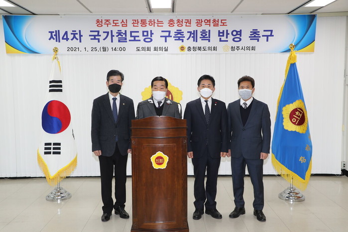 [충북=세계타임즈 이현진 기자] 충북도의회는 25일 청주시의회와 함께 도의회 회의실에서 청주도심을 관통하는 충청권 광역철도 구축안을 국토교통부 ‘제4차 국가철도망 구축계획’에 반영하라고 촉구했다.
