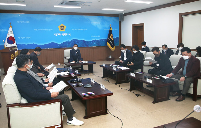 의회 의장단은 대구시 기획조정실장으로부터 취약계층 양극화 해소 지원, 세제감면 등 경영비용 부담 경감, 공공일자리 확충 지원, 시민체감형 소비 촉진, 피해업종 단계적 일상회복 지원 등 대구시의 ‘긴급 민생경제 특별대책’에 대해 보고를 받고, 이에 대해 머리를 맞대고 논의하는 시간을 가졌다.