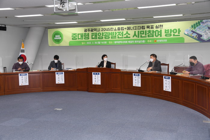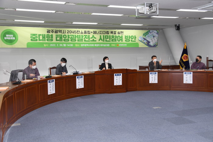 [광주=세계타임즈 손권일 기자] 광주광역시의회 장연주 의원은 28일 오후 시의회 5층 예산결산특별위원회의실에서 '중대형 태양광발전소 시민참여 방안'을 주제로 제114차 정책토론회를 개최했다