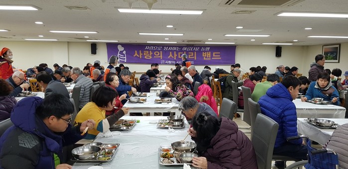 [대전=세계타임즈 이장성 기자] 대전시 SNS 봉사단체 사랑의 사다리 밴드(리더 이정제)는 28일 오전11시, 유성구장애인복지관(관장 김영근)에서 삼계탕 300그릇 봉사로 우리사회의 따뜻한 사랑을 전달하였다.
