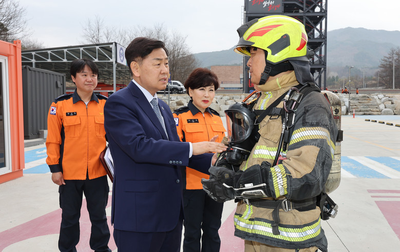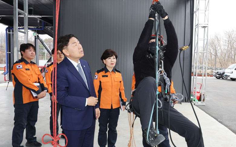 이날 김 지사는 소방교육훈련센터에 도착해 교육 현장을 순회했다. 다목적 강당에서 신규 임용 소방관들을 만나 격려의 말을 건넸고, 지휘역량강화센터에서는 재난 상황별 지휘 훈련에 임하는 대원들을 응원했다. 이어 훈련탑에서 전문 로프 구조훈련을 참관하고, 실화재 훈련장에서는 실제 불을 활용한 훈련 시설을 직접 시찰하며 시연을 지켜봤다.