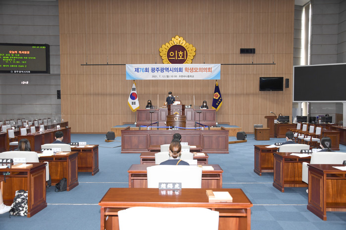 광주광역시의회는 학생 모의의회를 2005년부터 광주광역시교육청에서 학교를 추천받아 진행 중으로 지금까지 총 76회 8,100여명이 체험했고 11월 중에는 체험 우수 수기에 대해 시상할 예정이다.