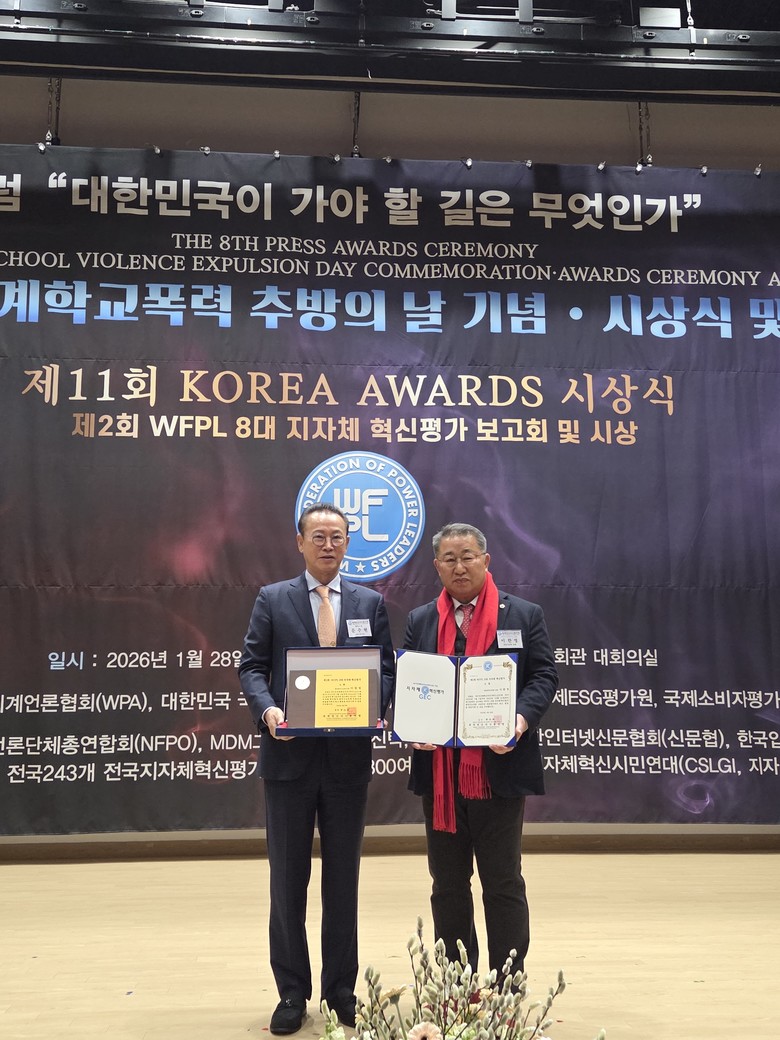 이번 시상식은 WFPL 부설 지자체 혁신평가위(GEC)와 대한민국 국회가 공동 주최하여 1월 28일 국회의원회관 대회의실에서 개최되었으며, 이한영 운영위원장은 지자체 혁신에 기여한 공로를 인정받아 최고 영예를 안았다.