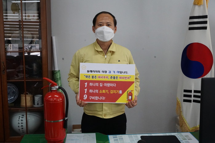 [동해시=세계타임즈 김민석 기자] 김기하 동해시의회 의장은 4일 주택용 소방시설인 화재감지기와 소화기의 중요성을 알리는 '119 릴레이 챌린지'에 동참했다.