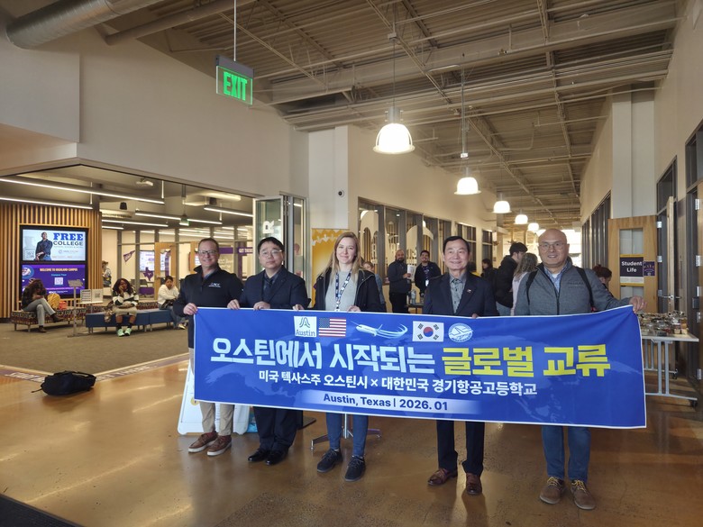 [광명시 세계타임즈=송민수 기자] 서울·경기 유일의 항공특성화고등학교인 경기항공고등학교(학교장 유형진)는 지난 1월 20일 미국 텍사스주 오스틴 지역의 Austin Community College(ACC)를 방문해 국제교류 프로그램 운영을 위한 협의회를 열고, 주요 교육·학생지원 시설을 둘러보는 캠퍼스 투어를 진행했다고 밝혔다.