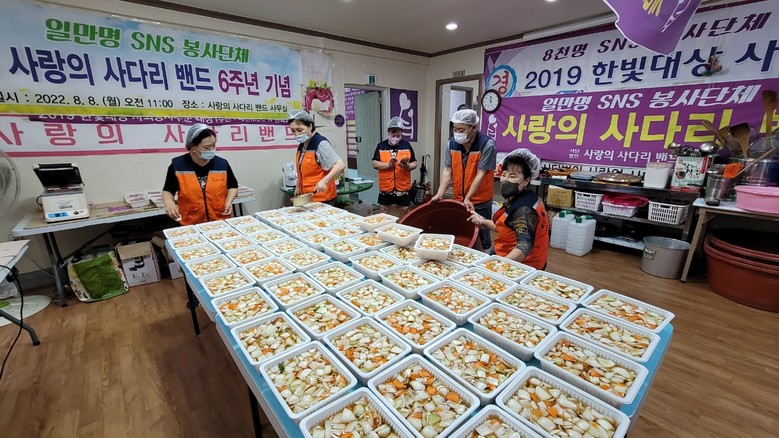 [대전 세계타임즈=이채봉 기자] 대전광역시 SNS 일만명 봉사단체 사랑의 사다리 밴드(리더 이정제)는 31일 오전9시, 대덕구 중리동에 위치한 사무실에서 양파초절임 100개를 만들어서 대덕구 송촌동 행정복지센터(동장 김태훈)에 전달을 하였다.