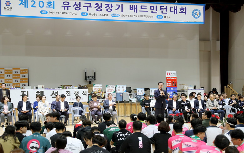[대전 세계타임즈=이채봉 기자] 대전시의회 조원휘 의장은 19일 ‘제20회 유성구청장기 배드민턴대회’가 열리는 유성종합스포츠센터를 찾아 “참가 선수 모두 부상에 유의해 좋은 성과 거두시길 바란다”며 응원의 메시지를 전하고 “대전시의회는 생활체육을 즐기기 좋은 도시 구현을 위해 최선을 다하겠다”고 밝혔다.