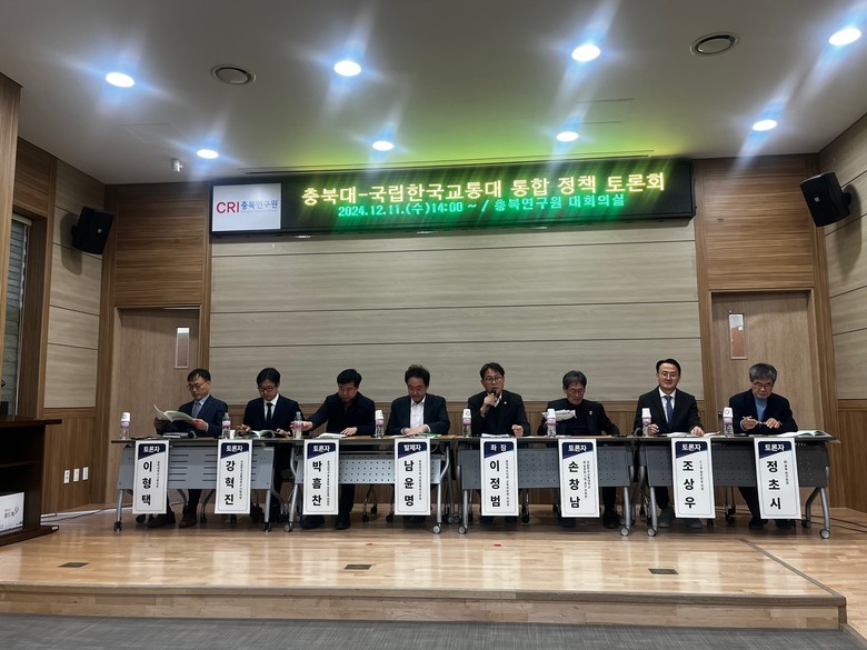 토론에서 이형택 충북대 기획처장은 충북에서 양 대학이 가지는 위치와 통합 후 대학의 역할 및 통합 충북대학교의 미래 발전에 대한 의견을 밝혔고, 강혁진 국립한국교통대 기획처장은 “대학 통합은 가장 큰 혁신의 기회이며, 학사구조 개편으로 학생정원 재배치를 통해 기존 대학 규모를 유지하는 것이 중요하고 각 캠퍼스를 특성화하는 것이 필요하다”고 말했다.