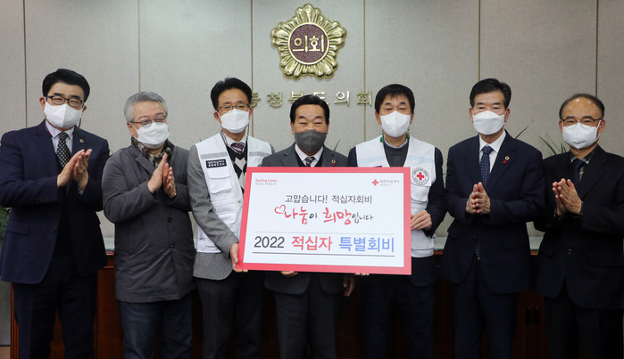 전달식에는 박문희 의장, 이의영 부의장, 이상욱 의회운영위원장, 최경천 대변인과 김경배 적십자사 충북지사 회장이 참석했다.