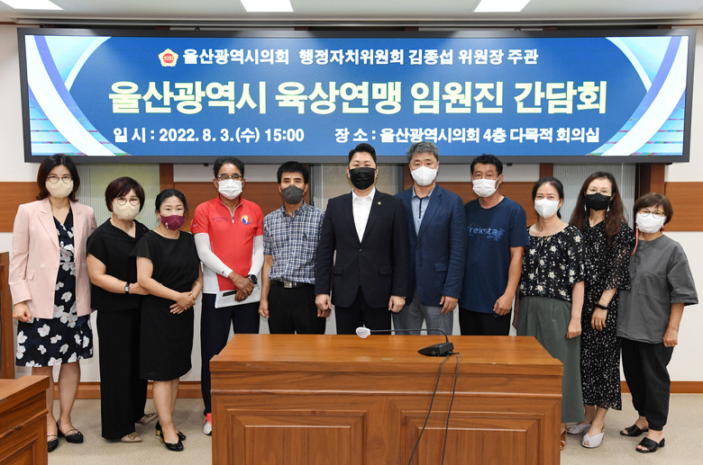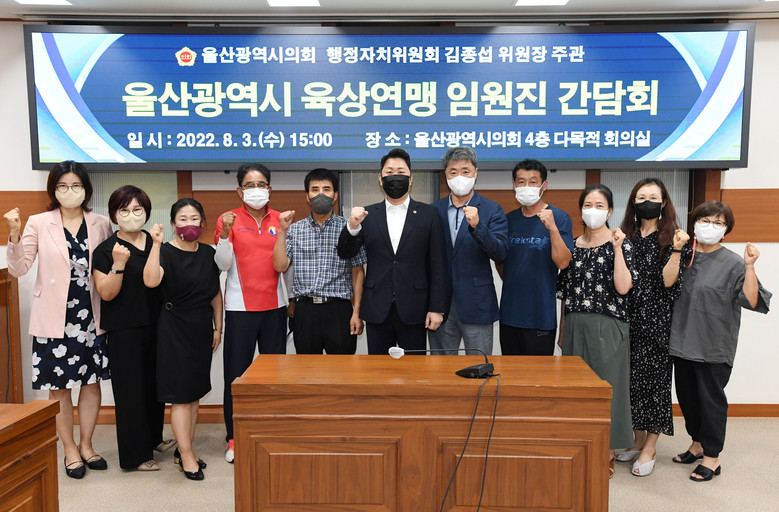 [울산 세계타임즈=이호근 기자] 행정자치위원회 김종섭 위원장은 3일 오후 3시 시의회 4층 다목적회의실에서 울산광역시 육상연맹 임원진과 간담회를 갖고 전국체전 준비상황, 육상경기장 시설개선 등에 대한 의견을 청취했다.