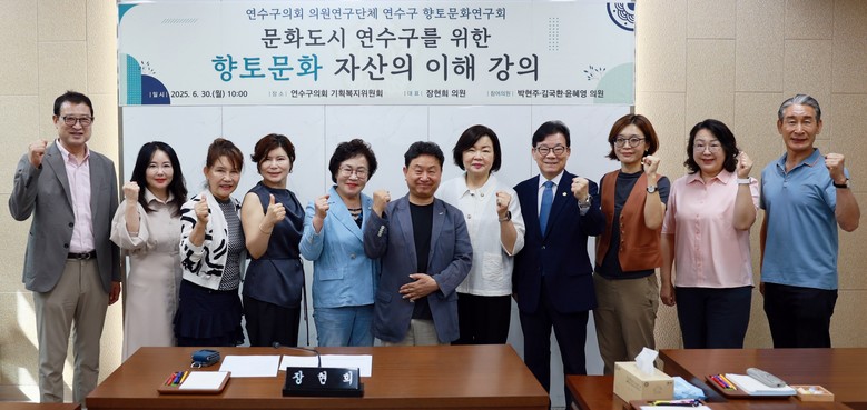 장현희 대표의원은 "급속한 도시개발로 사라져가는 연수구의 소중한 향토문화 자산을 체계적으로 이해하고 보존하여 문화적 정체성을 확립하는 것이 이번 강의의 목적이었다"라며 "연구회 소속 의원들과 향토문화에 관심 있는 지역민들이 함께 참여하여 연수구만의 독특한 문화적 가치를 재발견하는 뜻깊은 시간이 되었다"고 말했다.
