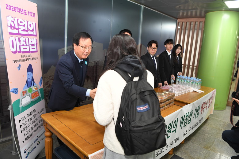 이날 행사에는 유희태 완주군수와 박노준 우석대학교 총장, 이순덕 군의원, 김정은 사회적협동조합 양지뜰 대표 등이 참여해 바쁜 학업으로 아침 식사를 거르는 대학생들에게 로컬푸드 식재료로 만든 식사를 직접 배식하며 따뜻한 격려를 건넸다.