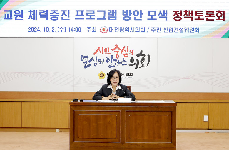 [대전 세계타임즈=이채봉 기자] 대전시의회는 2일 시의회 소통실에서 박주화 의원(국민의힘, 중구 1)주재로 ‘교원 체력증진 프로그램 방안 모색 정책토론회'를 개최했다.
