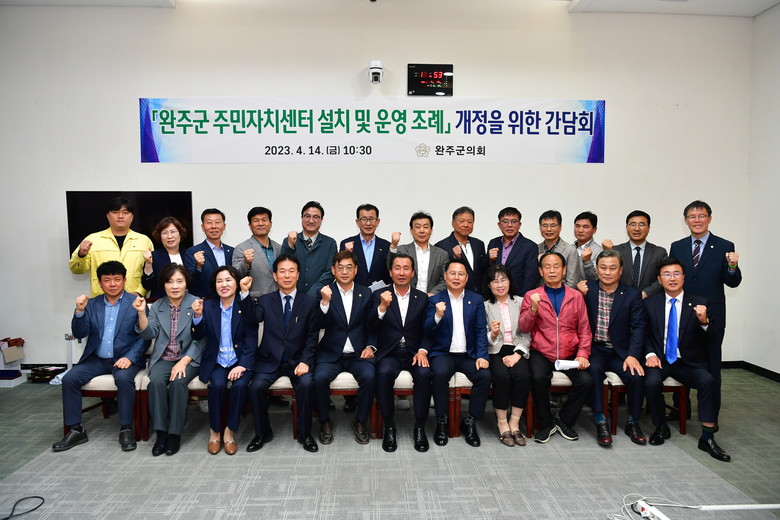[완주=세계타임즈 = 김윤영 기자] 완주군의회(의장 서남용)가 14일 완주군의회 문화강좌실에서 ‘완주군 주민자치센터 설치 및 운영 조례’ 개정을 위해 완주군 주민자치연합회와 간담회를 가졌다.