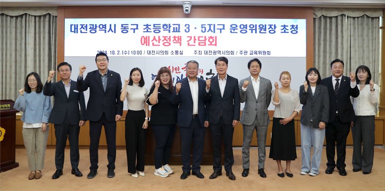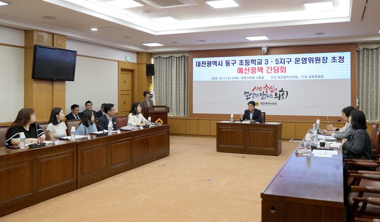 [대전 세계타임즈=이채봉 기자] 대전시의회 교육위원회 이상래 의원(국민의힘, 동구2)은 2일 오전 10시 의회 소통실에서 ‘대전광역시 동구 초등학교 3·5지구 운영위원장 초청 예산정책 간담회’를 개최했다.