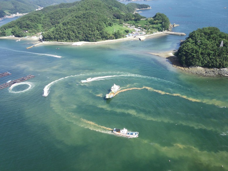경남도는 특보 발표 이전부터 신속하게 초동방제에 나섰으며 특보 해제까지 인력 9,759명, 선박 4,640척을 투입하여 황토 13,456톤을 살포하였다.