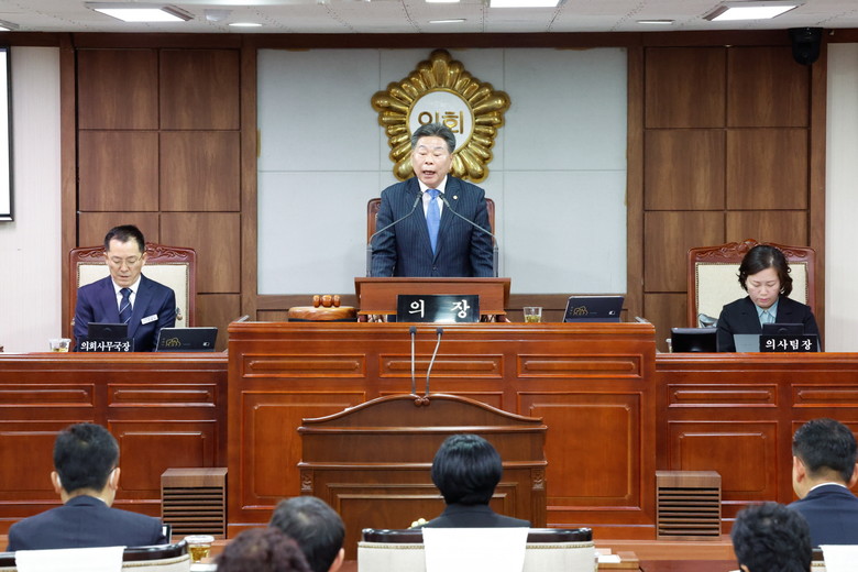 강형구 의장은 개회사를 통해 “지난 15일, 순천대와 목포대가 대학 간 통합에 합의한 만큼 순천시의회도 우리 지역 의대 설립을 위한 지원을 아끼지 않겠다”고 말하며, “의원님들께서는 행정사무감사를 통해 건설적이고 미래지향적인 정책 대안을 제시해 주시길 바란다”고 당부했다.