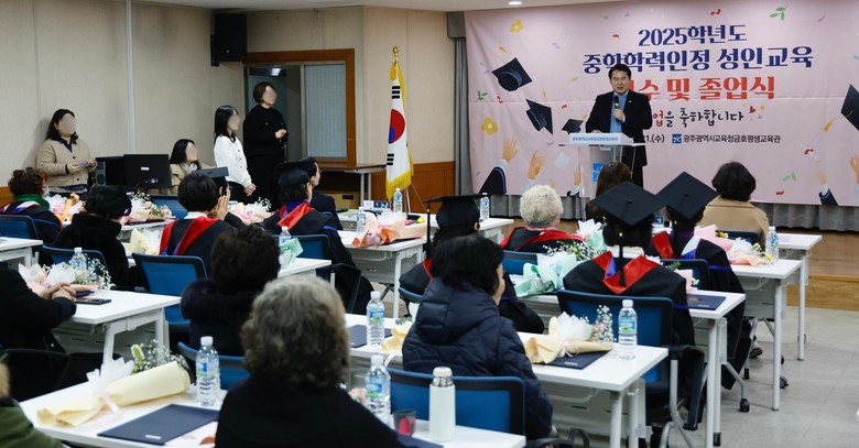 [광주 세계타임즈=손권일 기자] 광주시교육청금호평생교육관(이하 금호평생교육관)은 21일 제3평생학습실에서 ‘2025학년도 중학학력인정 성인교육 이수 및 졸업식’을 개최했다.